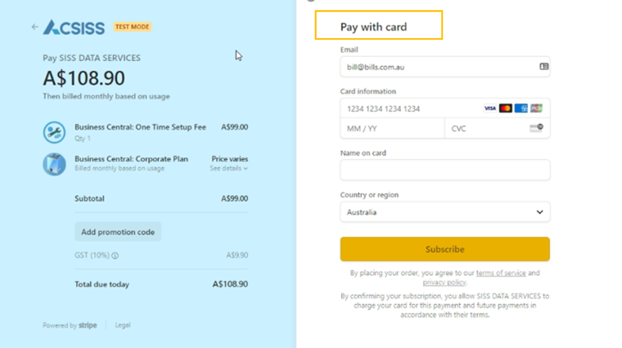 Enter your Direct Debit details > Click Confirm Payment OR Enter your Credit Card details > Click Subscribe