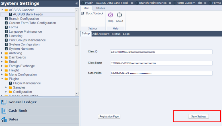 From Jiwa7, navigate to System Settings / ACSISS Connect / ACSISS Bank Feeds