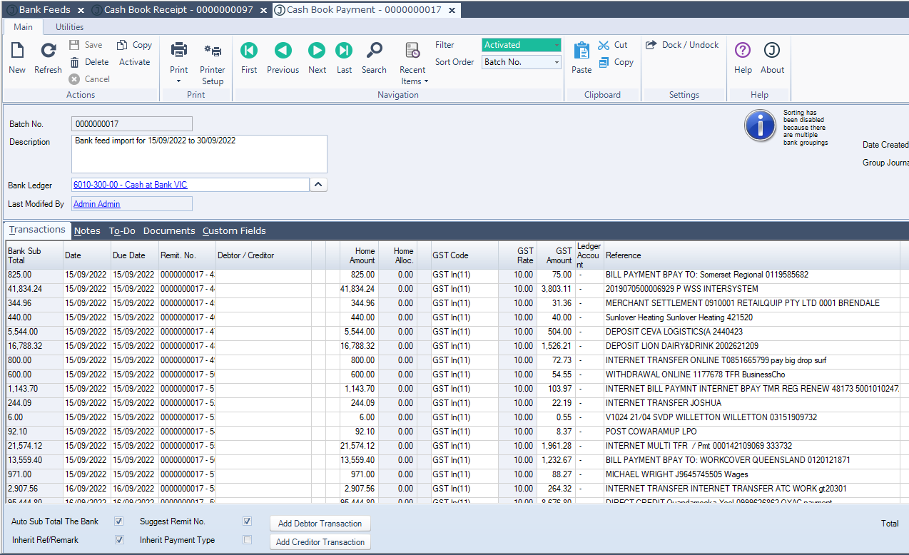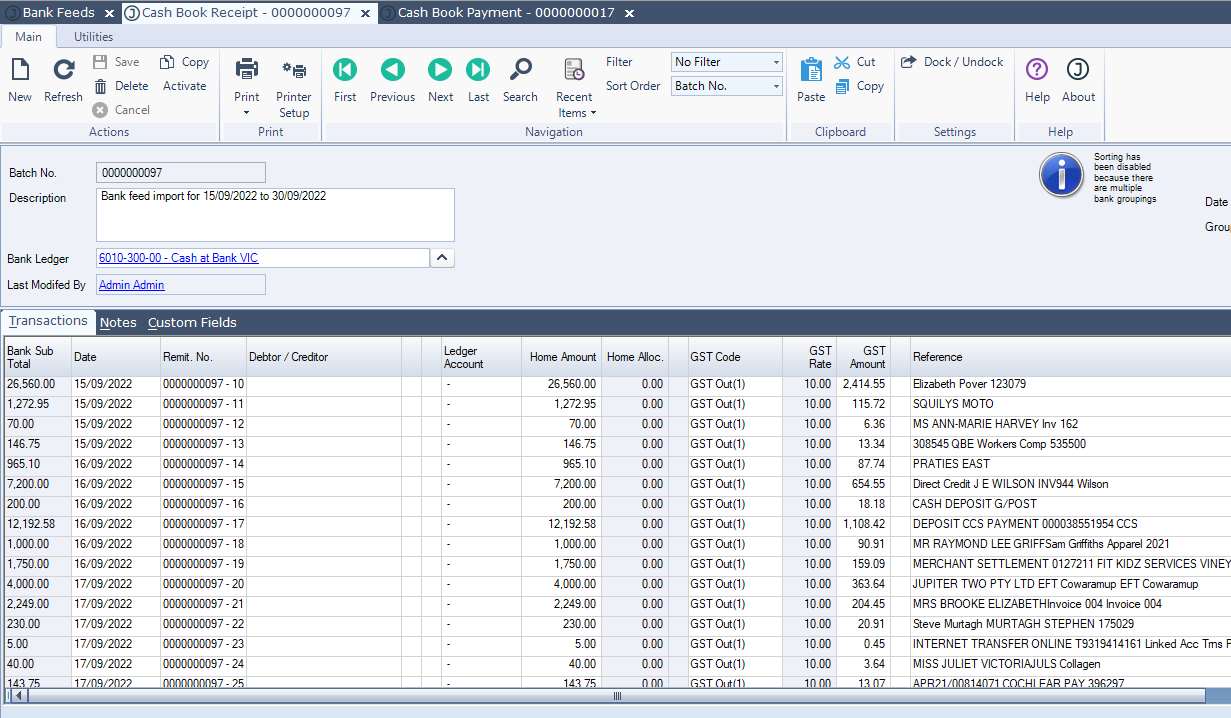 Your transactions will be imported into the Cash Book (receipts and/or payments), a pop-up will be displaying providing details of the imported transactions
