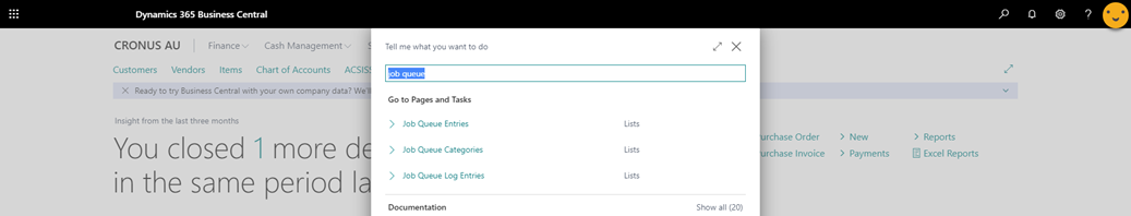 From BC, go to search and type in “job queue” > Go to Job Queue Entries