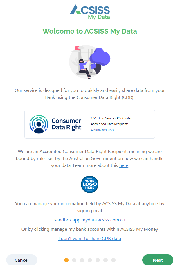 An ACSISS My Data account must be created before you can connect a bank account using CDR data.
