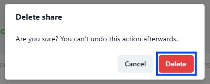 This will prompt a confirmation dialogue to ensure that you want to proceed with the removal. To confirm the removal, click Delete
